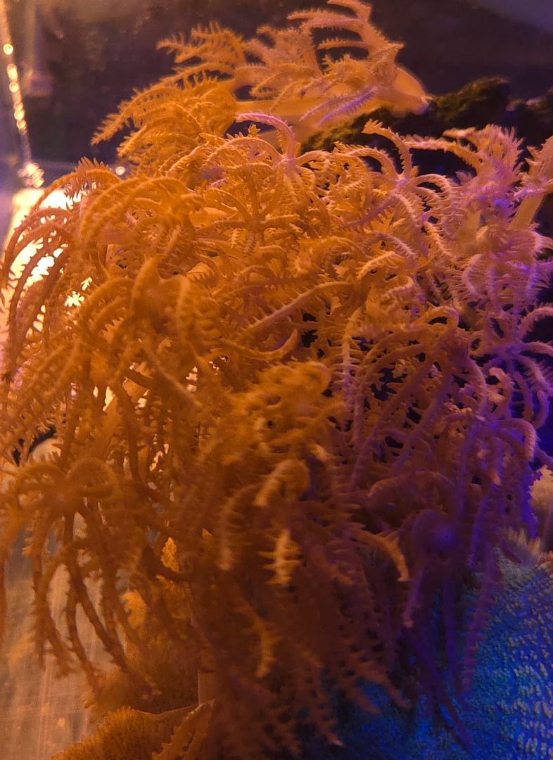 Anthelia, often called Waving Hand Coral, is a fast-growing soft coral known for its long, delicate stalks topped with feathery, eight-tentacled polyps. It is frequently confused with Pulse Coral (Xenia), but unlike Xenia, Anthelia does not “pulse” its hands and generally has much longer, more flowing tentacles. It is one of the hardiest corals in the hobby, making it a favorite for beginners who want to add significant “billowing” movement to their reef.