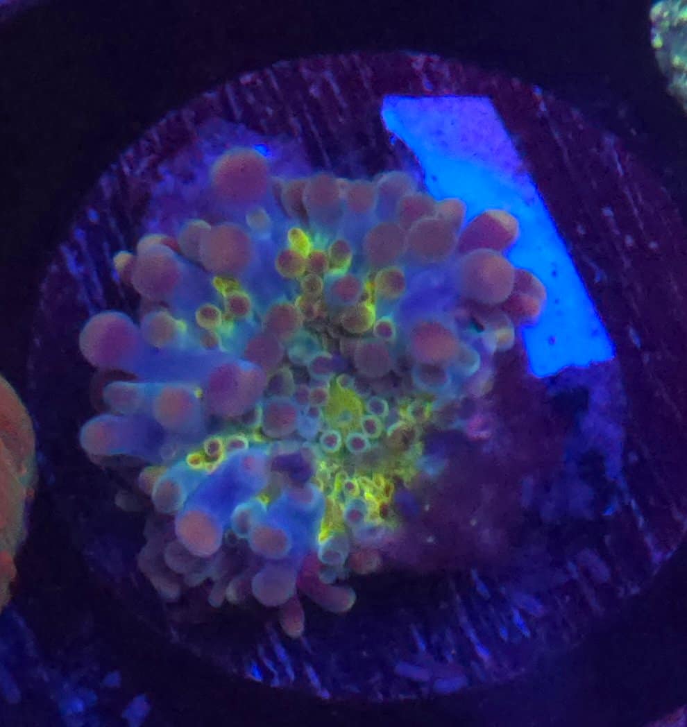 The Yuma Mushroom typically grows up to 3 to 5 inches in diameter, making it a manageable addition that fits well into most reef tanks without overwhelming other corals.Sold as a sinlge mushroom.