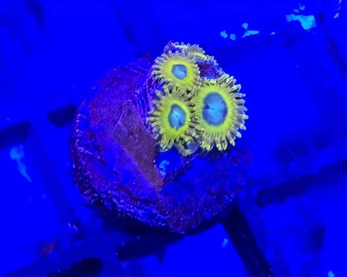 Pikachu Zoa polyps typically reach about 1cm to 2cm in diameter, forming dense colonies that expand over time.Sold as 1-3 polyps on 0.5 -1 inch frag plugs.