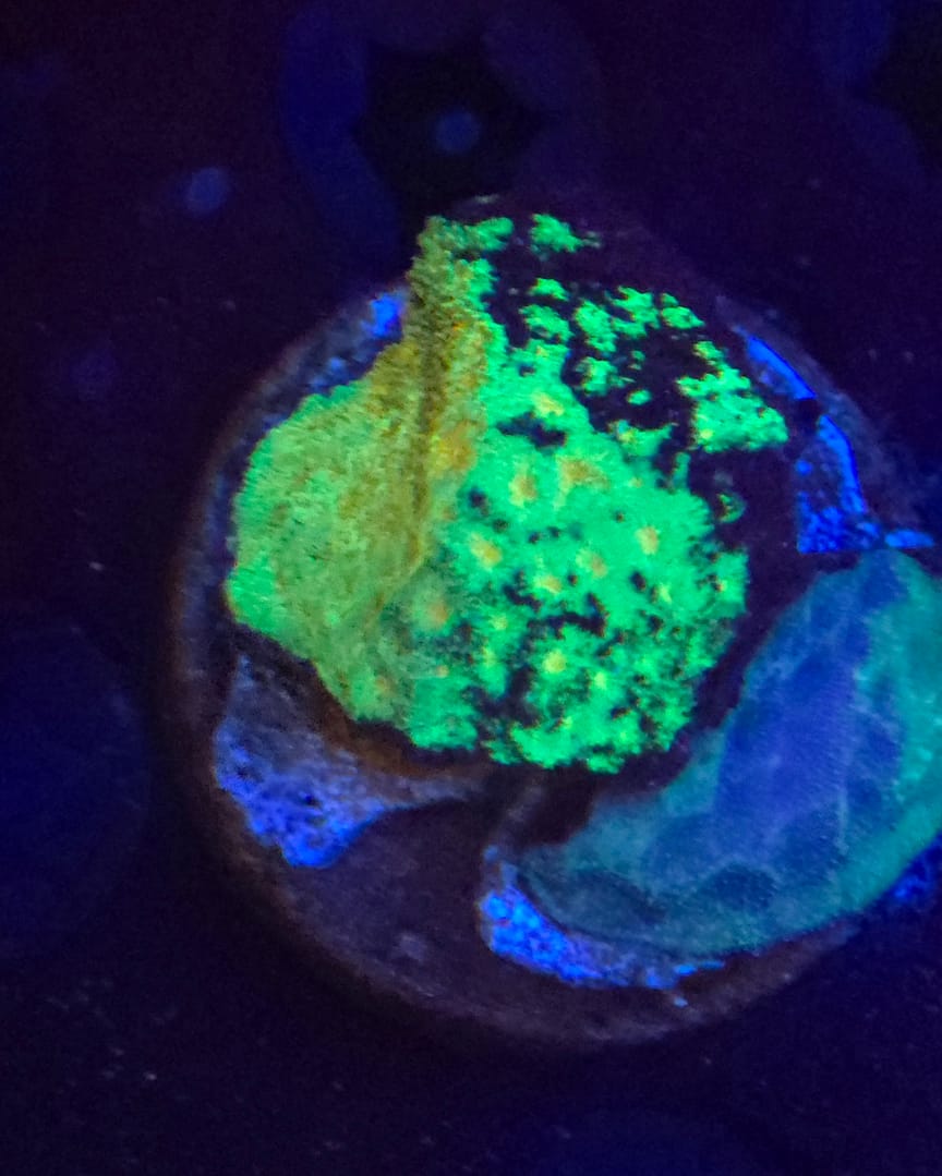 Psammocora coral is a unique Small Polyp Stony (SPS) coral that features a fuzzy, velvet-like texture due to its tiny, recessed polyps. Often referred to as “Sandpaper Coral,” it is much hardier than many other SPS varieties, making it a great choice for hobbyists looking to add diverse texture to their reef. Watermelon Psammocora is particularly striking, offering an intense, warm glow that stands out against traditional greens and blues. It can grow in an encrusting or sub-branching fashion, eventually covering rockwork with a thick carpet of vibrant color.